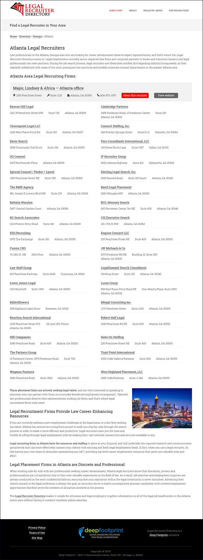 We have built the most comprehensive listing of legal recruiters nationwide and presented all with a free basic listing.